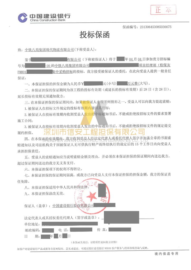 投标保函是指在招标投标中招标人为保证投标人不得撤销投标文件、中标后不得无正当理由不与招标人订立合同等,要求投标人在提交投标文件时提交的由银行或者担保公司出具的书面担保